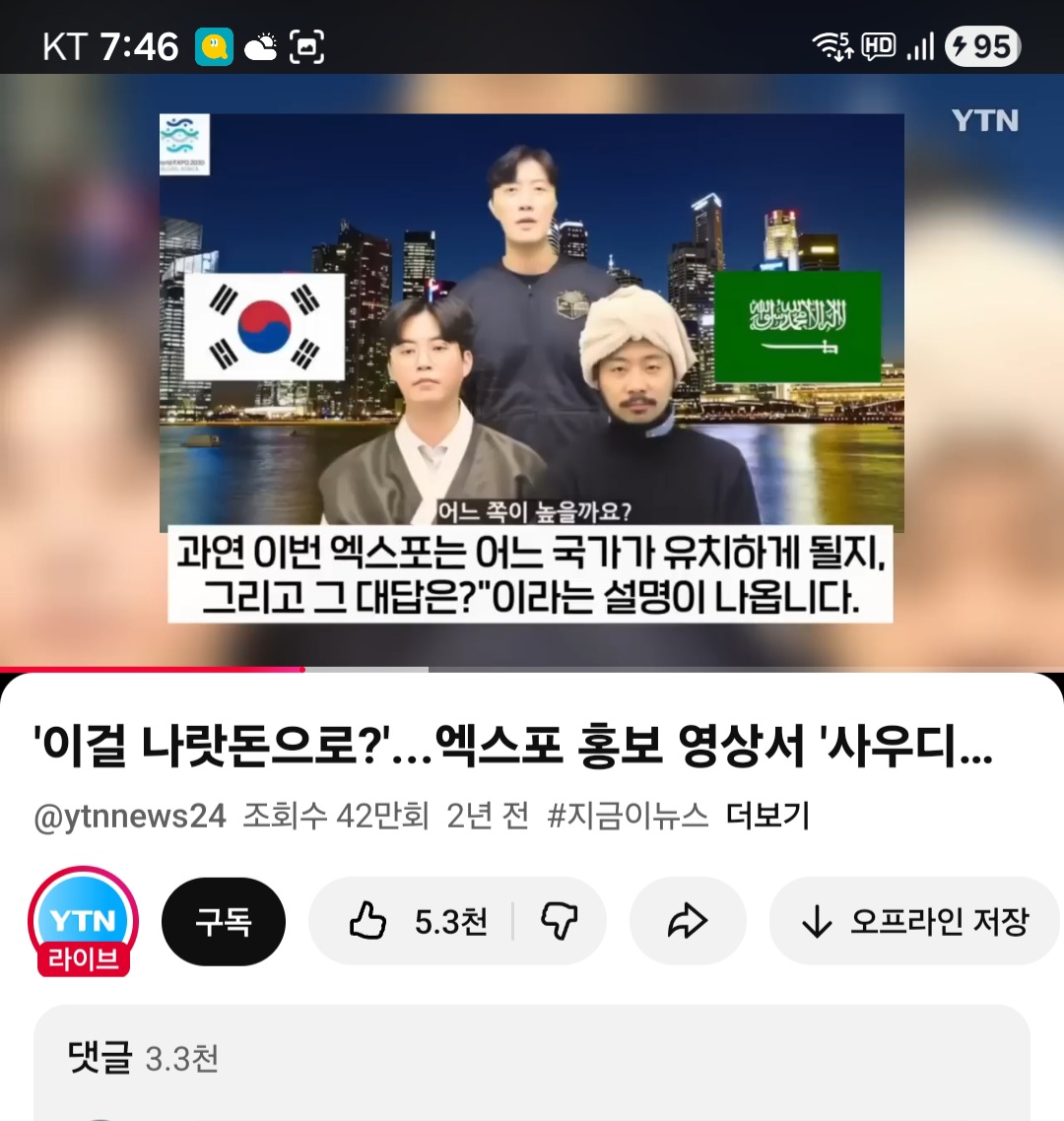 저 터번 같은건 사우디에서 안쓰는거 거기다 사우디ai라고 나온 사람이 병.신처럼 사우디라는 단어만 반복함 충격적인건 KTV가 만든 홍보영상.. 결국 사우디랑 국교단절 할거냐는 사람들의 비난 여론이 거세지자 하루도 안되서 삭제함