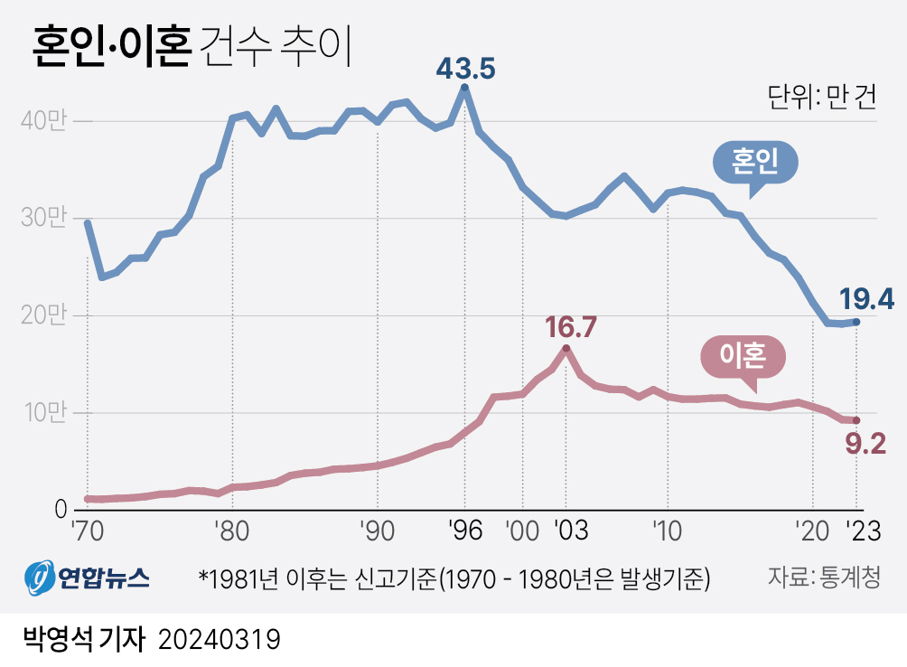 혼인건수는 저 표에 끝부분 23년 후반기 올해까지 늘고 있음. 올해 하반기도 기록상으로 늘어날 전망이고 | 25.12.07 00:03 | | |