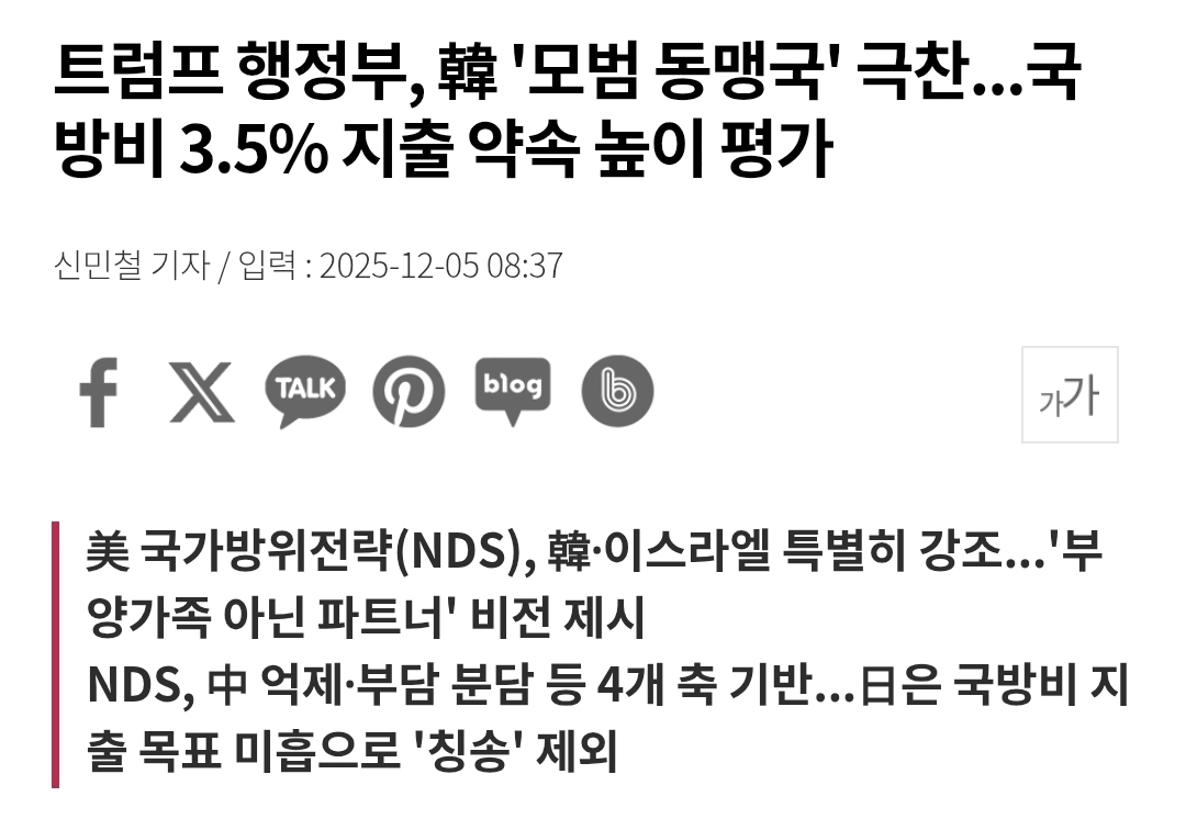국방비 증액을 3.5% 조진 걸 확인해서 그런다 함 일본은 2%로 올렸다고 하더라구 올린 거긴 한데 부족 하다는 거지 | 25.12.07 00:01 | | |