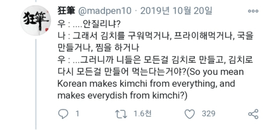 꼬레안은 무엇이든 김치로 만들어서 무엇이든 김치를 넣어먹는다