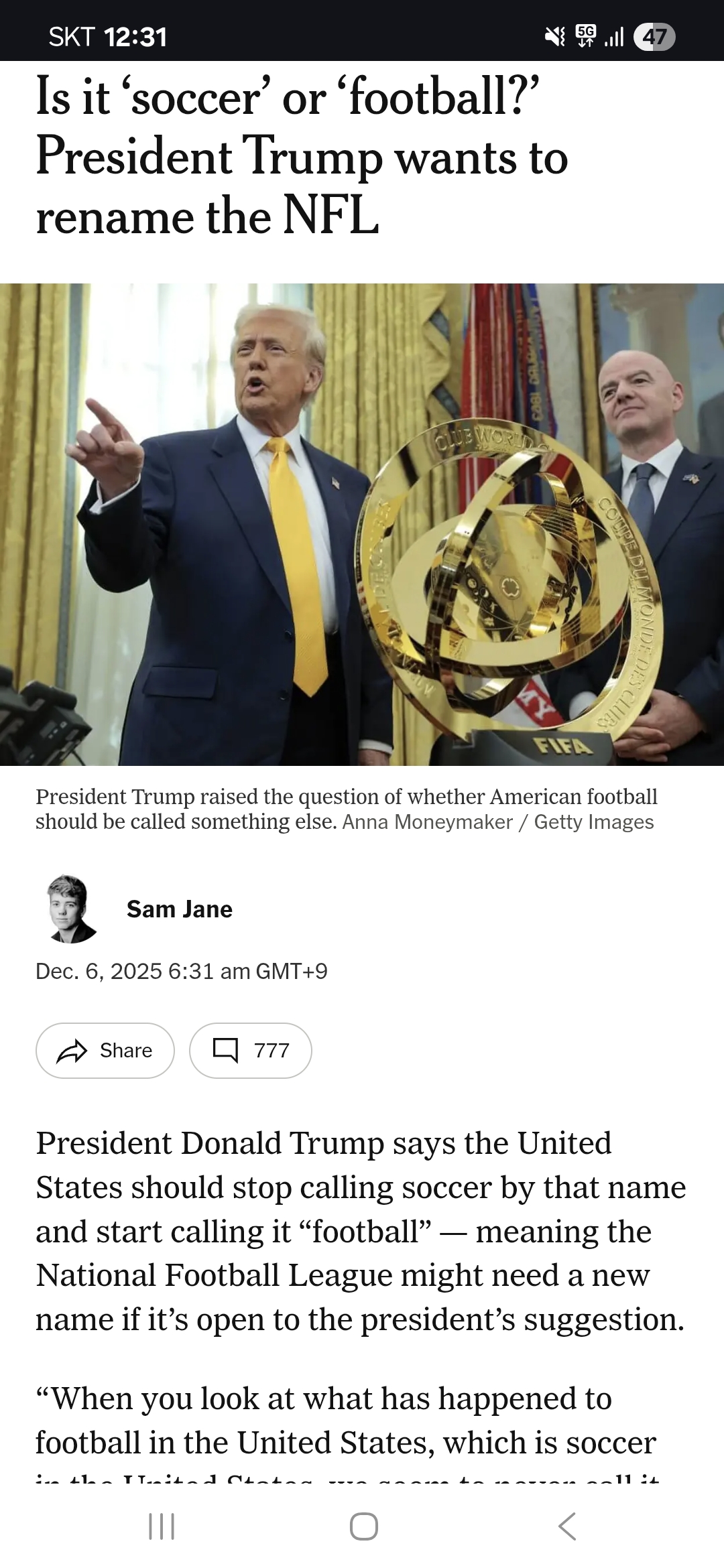 근데 이건 트럼프만 그런게 아니라 미국에서도 말이 많다는데 ㅋㅋ 가끔 발로 차는데 어떻게 풋볼이냐고 코미디프로에서도 까잖아 ㅋㅋㅋ