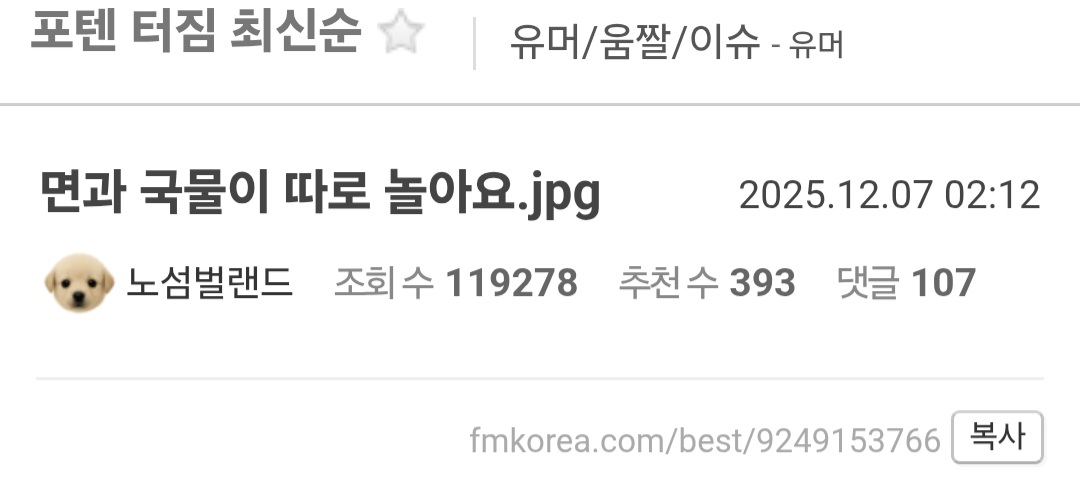 ㄹㅇㅋㅋ 한집배달 같은거 해도 어차피 배달 플랫폼이 서너개는 되니까 그닥 의미 없더라 | 25.12.07 08:12 | | |