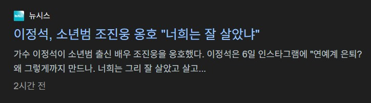 아이씨 그니까 불이익 얘기 꺼내는거 자체가 말이 안되잖아 조진웅 스스로 은퇴한건데 | 25.12.07 13:19 | | |