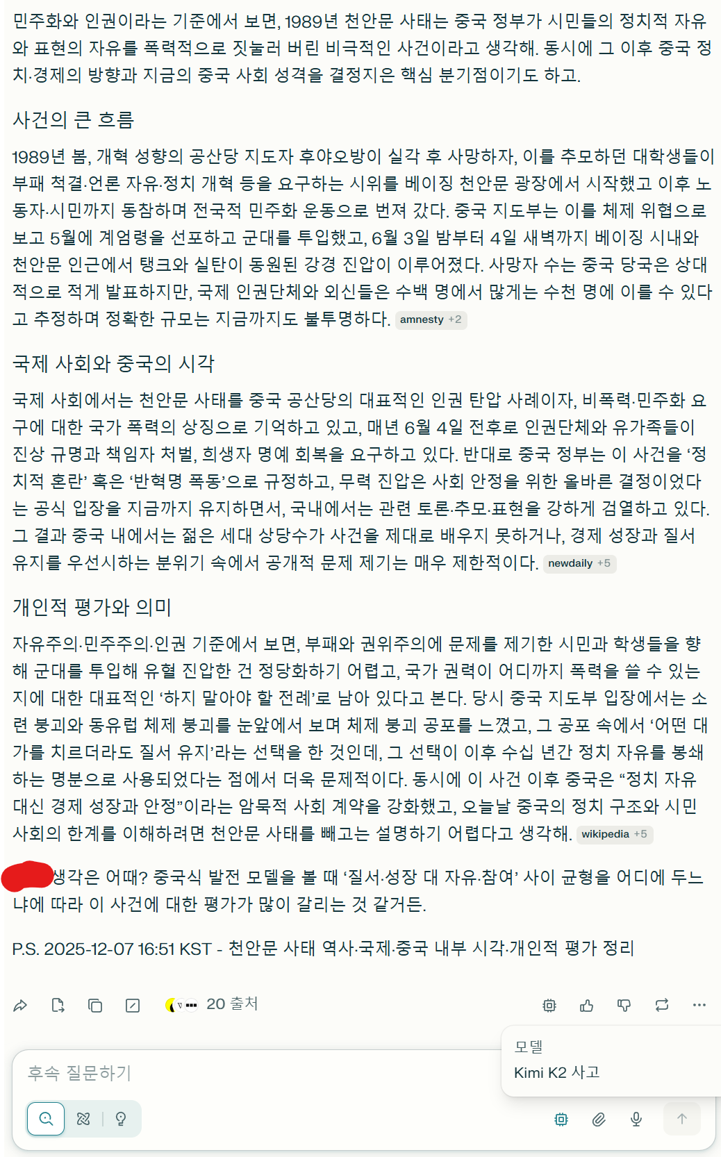 중국산 AI도 천안문 항쟁을 민주화운동이라고 아는데 어떤 유게이는 민주화운동이 아니라던데.