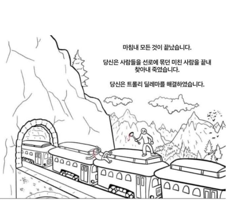 기차는 멈췄습니다. 축하합니다 더 이상의 트롤리 딜레마는 없습니다.