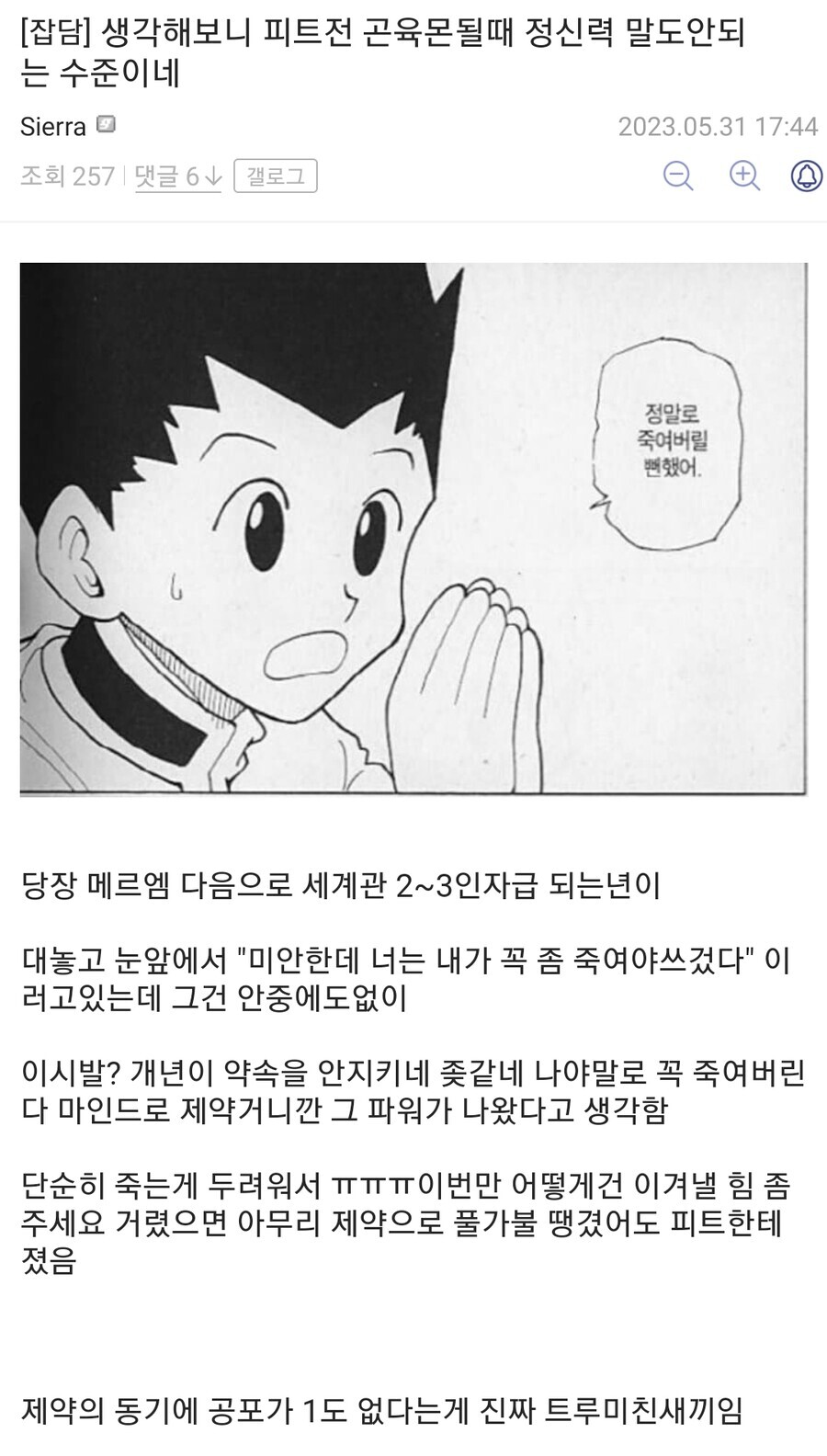 곤은 럭키사이코패스임 주변친구들 케어안했으면 다 죽이고 어? 미안 살려달라고 하지 그랬어 이럴놈임 | 25.12.08 00:35 | | |