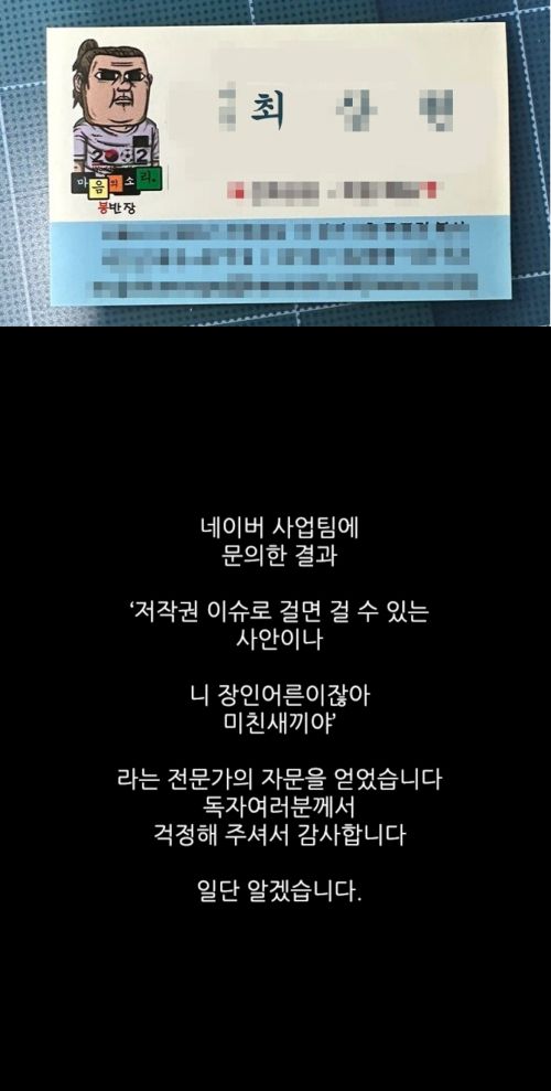 사유 : 장인이 명함에 제가 그린 캐릭을 써요 네이버 : 니 장인어른이잖아 미친ㅅㄲ야 | 25.12.08 18:22 | | |