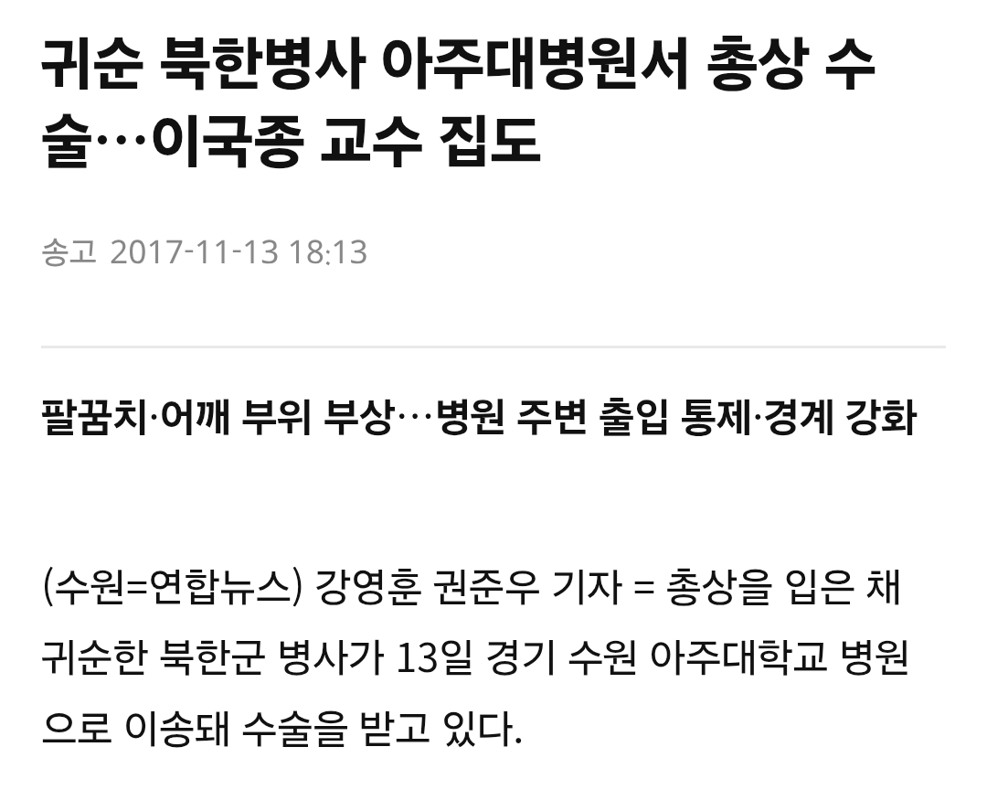 우리는 아직 기억한다 총상을 입은 귀순 병사라는 엄중히 관리해야 할 환자도 군 내부 병원에선 치료를 못한다고 딴곳으로 이송하던 때를