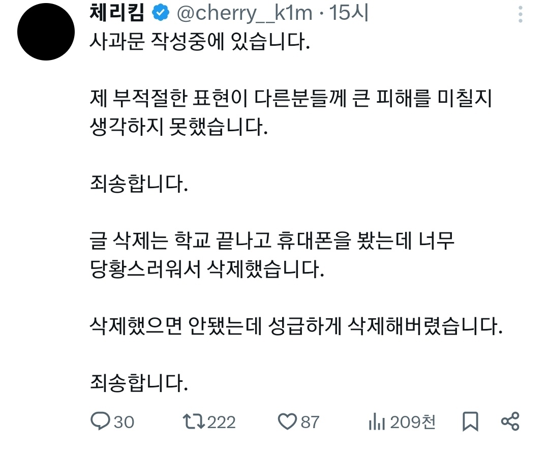 사과가 첫문장이 아니라 ^사과문작성중도르^라............. 흠........ | 25.12.09 11:43 | | |