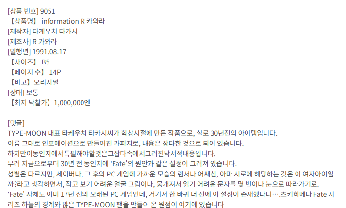 그야 나스 타케 급식 시절 91년도에 코미케 출품한 설정 노트가 경매에 나오면서 밝혀진거니 | 25.12.09 10:03 | | |