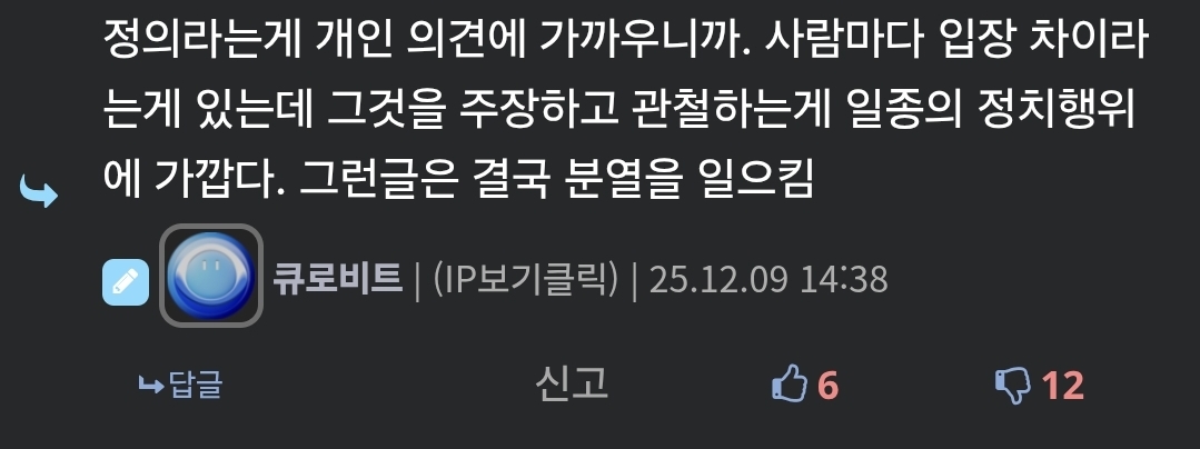 근데 그건 다른 이슈도 다 매한가지라는.게 문제지. | 25.12.09 15:10 | | |