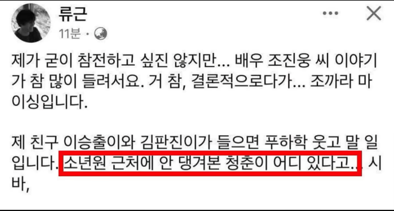 조진웅 자기도 가족이 있고 하니 더 욕먹고 돌맞기 전에 그냥 다 던졌을텐데, 왜 그 주변사람들은 놓질 못하냐 | 25.12.09 23:28 | | |