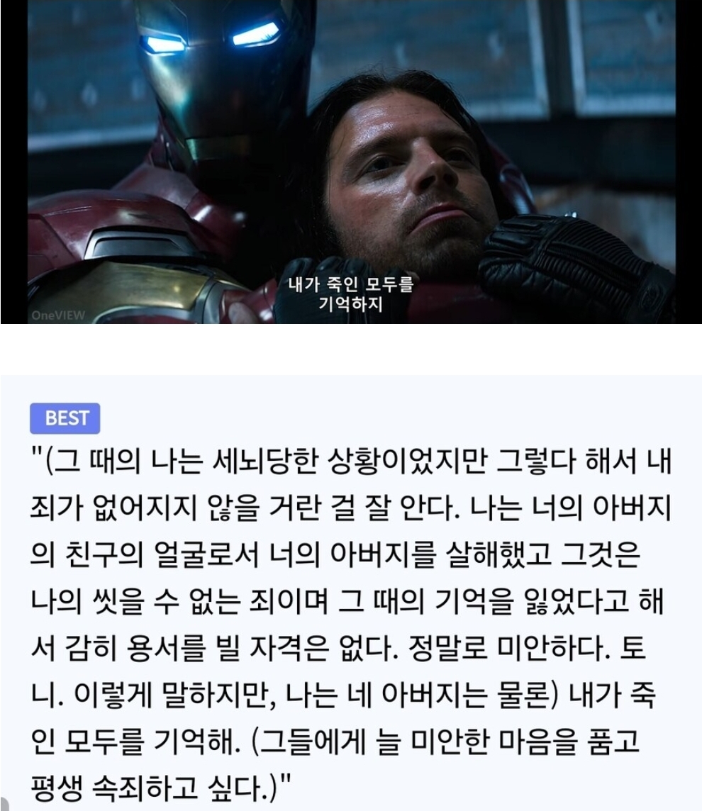 버키: 샘 이단체가 나온건 이유가 있어 그게.. 세르게이: 우린 뉴 어벤져즈zz다 !! 날개달린 니놈과는 차원이 다른 슈퍼초인들이지!! 버키 : ㅅㅂ