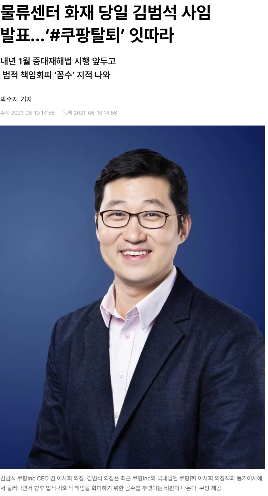 [유머] 박대준 쿠팡 대표 "한국 법인 대표로서 끝까지 책임 지겠다" [42]