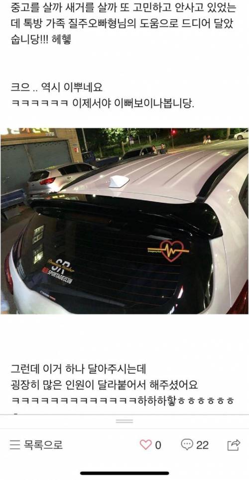 스포일러 양면테이프로 붙이는거잖아 이건 동호회의 누가 달아도 잘 붙으라고 같이 눌러줄꺼야 | 25.12.10 16:34 | | |