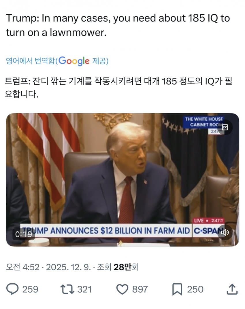 우리 트럼프는 그정도를 생각할 능지가 없어요!! | 25.12.10 17:59 | | |