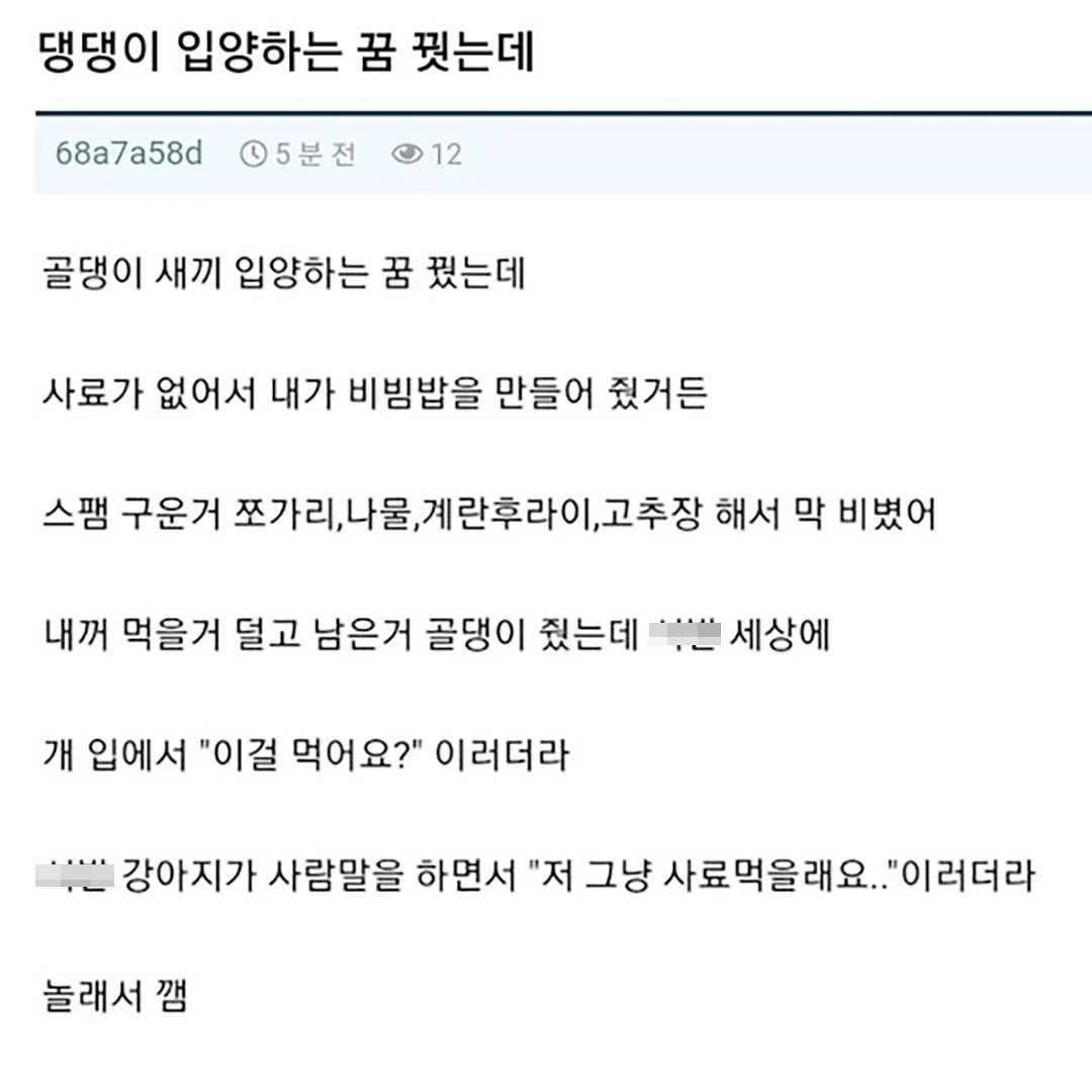 나도 어릴 때 이랬는데 반동으로 국에 밥말은거=개밥 공식이 서서ㅋㅋㅋ 국에 밥 안말아먹음 | 25.12.11 02:15 | | |