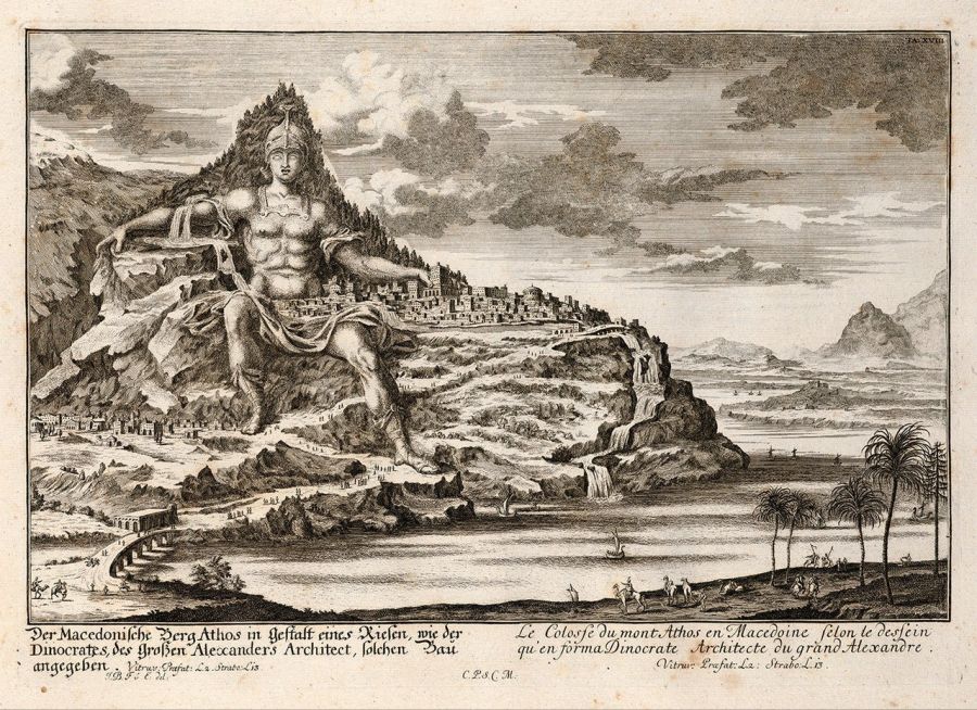 알랙산더 대왕 시절 그의 부하 중 하나는 저 아토스산에 거대한 알랙산더의 석상을 새기고 그 석상의 품에 도시를 만들자는 엄청난 제안을 한적이 있음