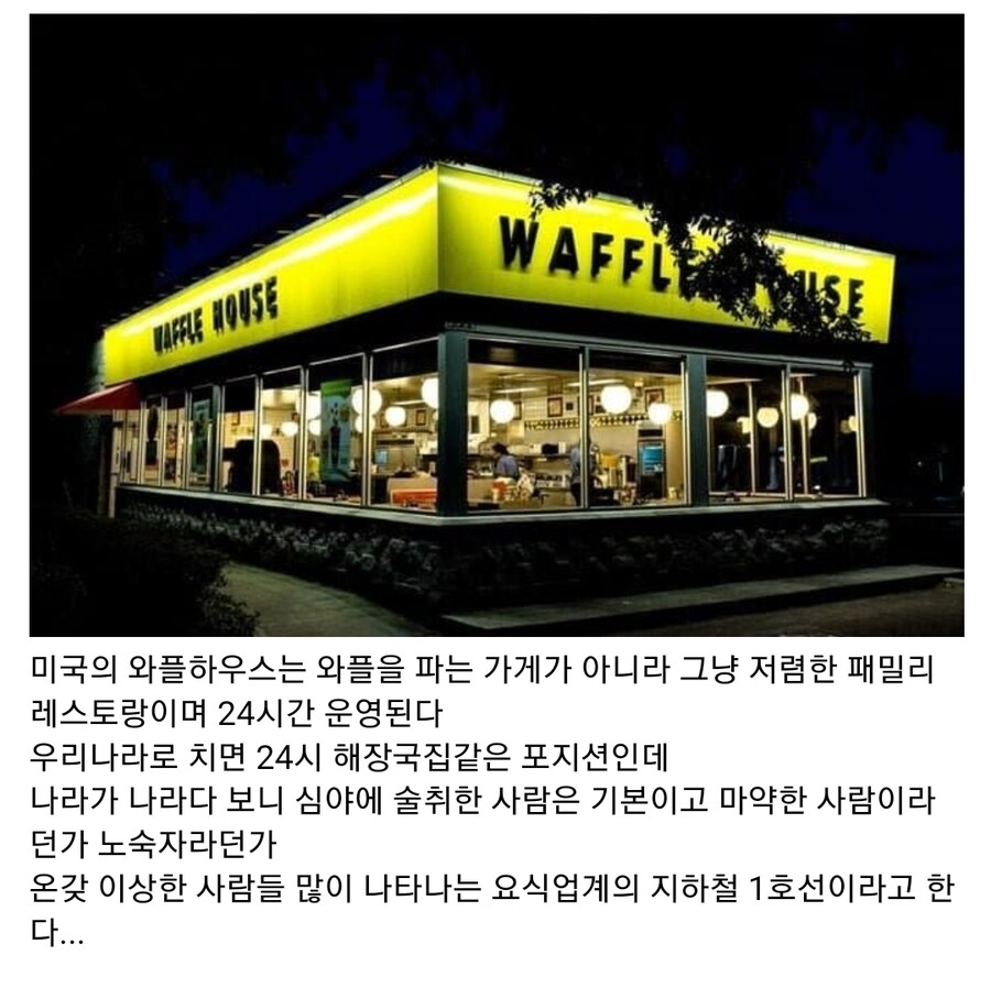 허리케인이 들이닥쳐도 영업을 하는 곳..의자정도는 한손으로 받아내는 직원이 있는 곳..이제 죠죠 스탠드까지..대체 와플하우스는 어떤 곳일까