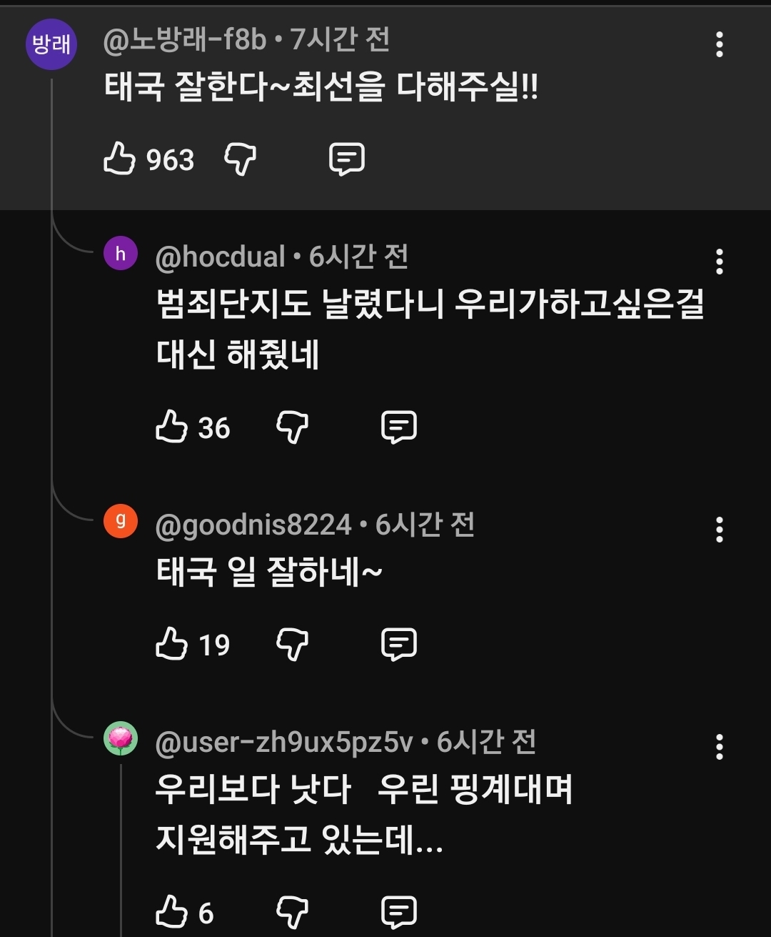 역사적으로 민족감정이 좋지 않은 것도 이유고. 최근 이슈에 한정해도 동남아에서 캄보디아 피싱은 우리나라에서 이슈가 되기 전부터 악명이 높았음. 우리나라 대학생이 사망하면서 한국 언론 탐사보도가 대대적으로 보도되었고, 그게 한류 열풍을 타고 세계 각지에 소식이 전해지면서 캄보디아에 대한 반감이 더 높아짐. | 25.12.11 21:30 | | |