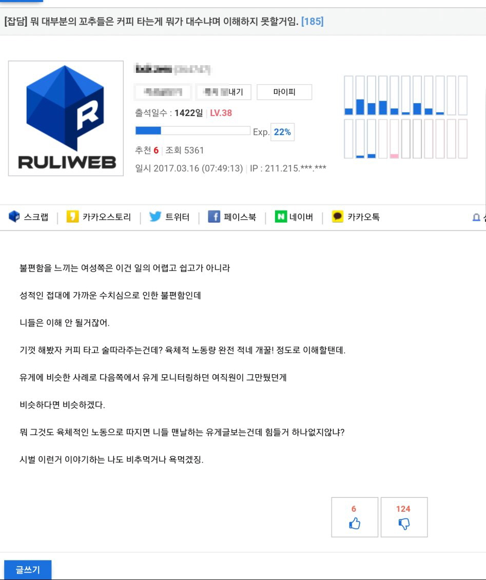 유게에서도 커피대접은 성적인 접대에 가까운 수치라고 일침하시던 분이 계셨지
