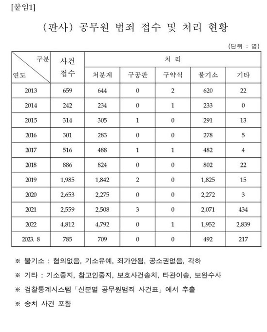 대한민국에는 판사가 1만번쯤 입건됐는데 기소된 사건이 0건이랬나?