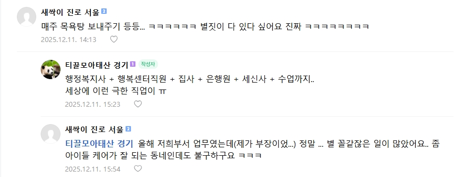 저도 처음엔 님처럼 안 믿었거든요. 에이 설마 교사한테 저런 걸 시키겠어?라는 생각에 궁금해서 교사 커뮤니티나 뉴스 좀 찾아보니까 거짓선동은 아니더군요. | 25.12.11 23:54 | | |