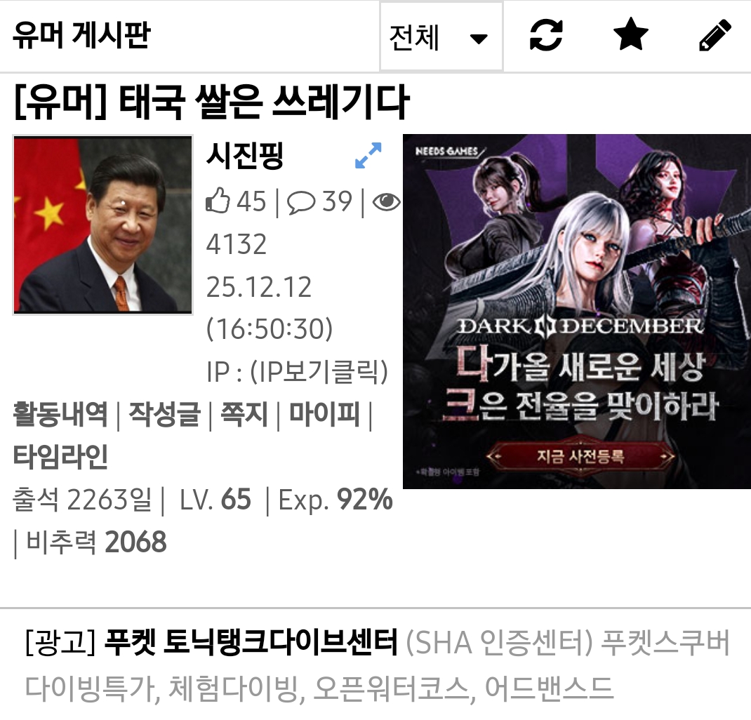 핑핑이 네 이놈! 한 국가의 주석이 남의 나라를 함부로 폄훼하다니!! | 25.12.12 17:18 | | |