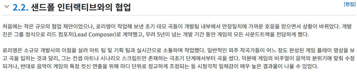 크 무명인 뮤지션이 우연히 개발진 눈에 들어 컨택 후 공식 음원으로 채택 후 수상까지 너무 맛도리다