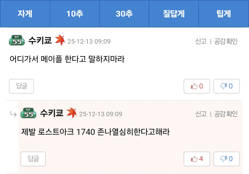 퍼지랑 비슷하긴 하지 메이플이 | 25.12.13 12:45 | | |