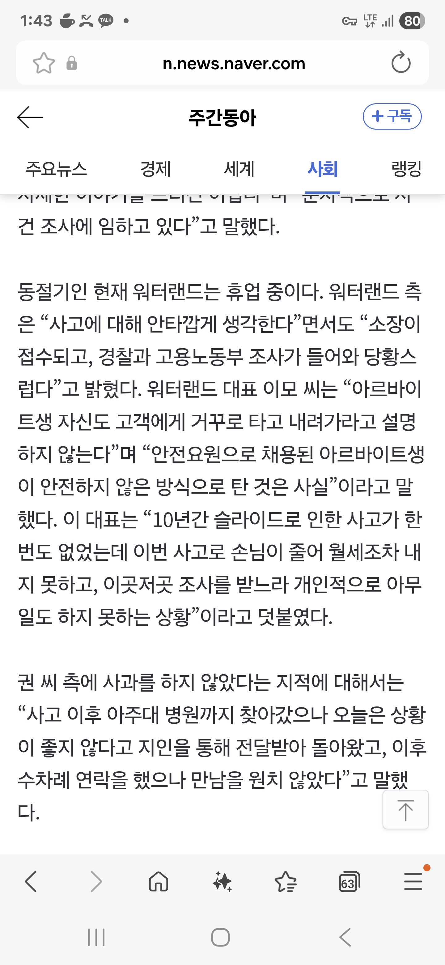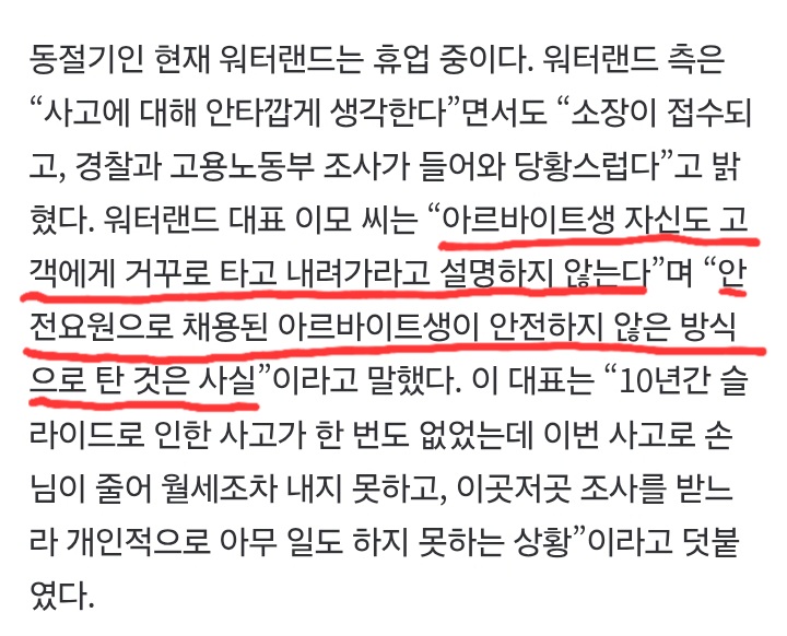 기사 제목 밑에는 안전요원이 안전하지 않은 방식으로 탔다고 적혀있는데 청소알바였음? | 25.12.15 13:31 | | |
