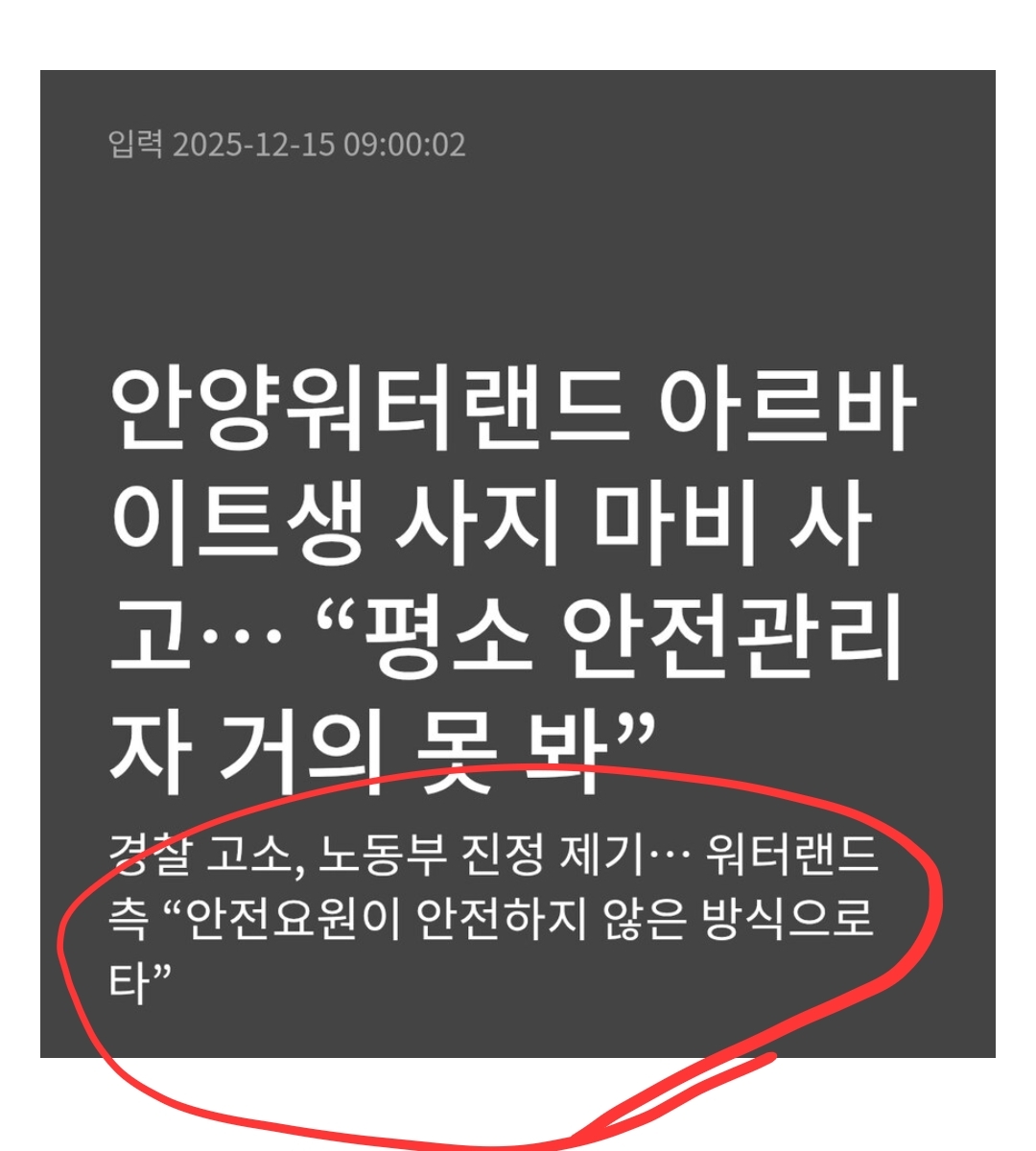 뉴스대로면 알바생이 "안전요원" 이고 "안전관리자"가 없었다는건데 뭔소리여 | 25.12.15 13:30 | | |