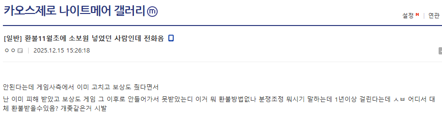 하긴 본문 글 내용은 '지금 환불받고 싶은데' 지 1년씩 걸려서 분쟁조정이나 소송하는 법 찾는게 아니니까 | 25.12.15 17:25 | | |