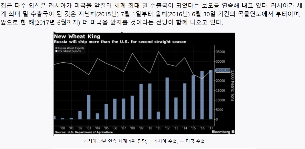 농사짓기 힘든땅 아님? 이라고 한다면 러시아와 우크라이나는 소련 공산당 망하고 자본주의로 전환되자, 세계 식량창고 역할하고있음 ㅋㅋ 러시아가 세계 곡물 수출 1위고, 우크라이나가 5윈가 그렇다던데 ㅋㅋ