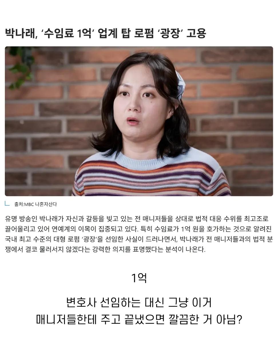 매니저 돈떼먹고 갑질 - 사실 주사이모 - 주사이모가 대놓고 나와서 사실 광장이 국내로펌 2위인가 3위인데 전관예우로 이겨버린다고 해도 박나래가 진실하다고 믿을 사람이 어디있을지? | 25.12.16 10:33 | | |