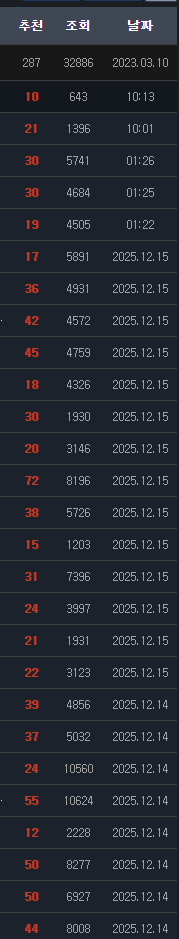 가보니까 조회수가 안 나오는 건 아닌데 글 리젠이 처참함 ㅋㅋ | 25.12.16 12:48 | | |