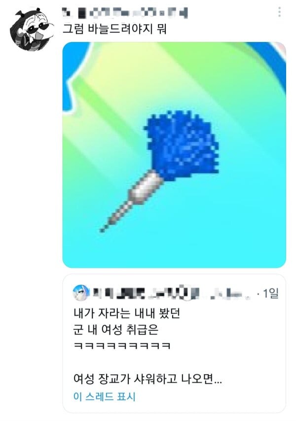 그리고 여군은 샤워 시설을 같이 아예 못 써서 거의 무조건 다른 대대나 전용 샤워시설에서 따로 씻는데 저건 또 뭔 ㅋㅋㅋㅋㅋ | 25.12.16 14:56 | | |