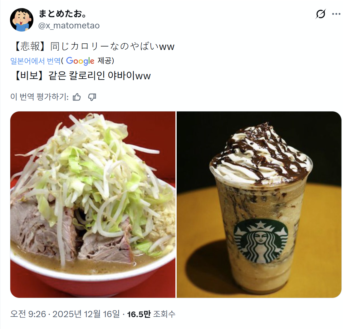 같은 양의 칼로리... 즉 상쇄되어... 제로 칼로리!! | 25.12.16 20:16 | | |