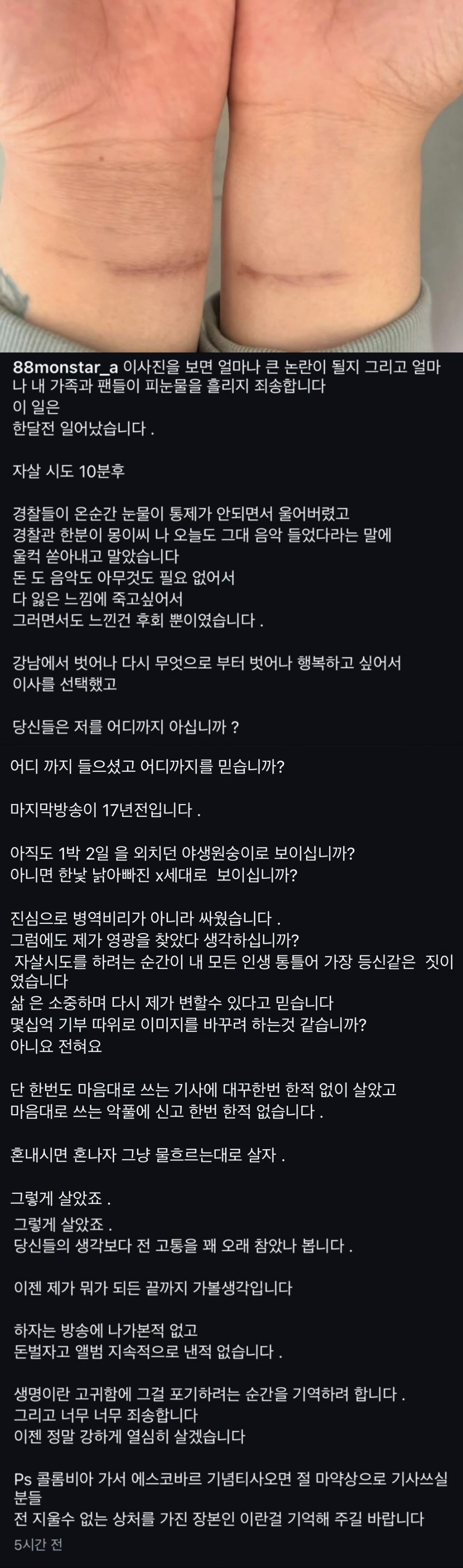 방송에 나온 건 아니고 빙송 못나온다고 자해했다는 개소리를 함 | 25.12.18 18:50 | | |