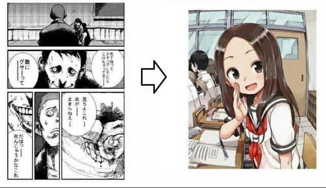전에 타카기양으로 흥하기 전에 그린거 봤는데 아인 느낌으로 하드보일드한거 그리려던 사람 같더라. 꽤 잘그리던데 근데 지금은 순애 럽코의 큰기둥이 됐으니 ㅋㅋㅋ