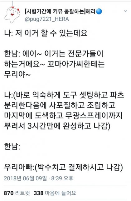 3시간 도색까지는 간단한거 했으면 ㅇㅈ인데 무광 뿌리려면 건조 빡시게 해야할껀데 말여... | 25.12.21 02:19 | | |