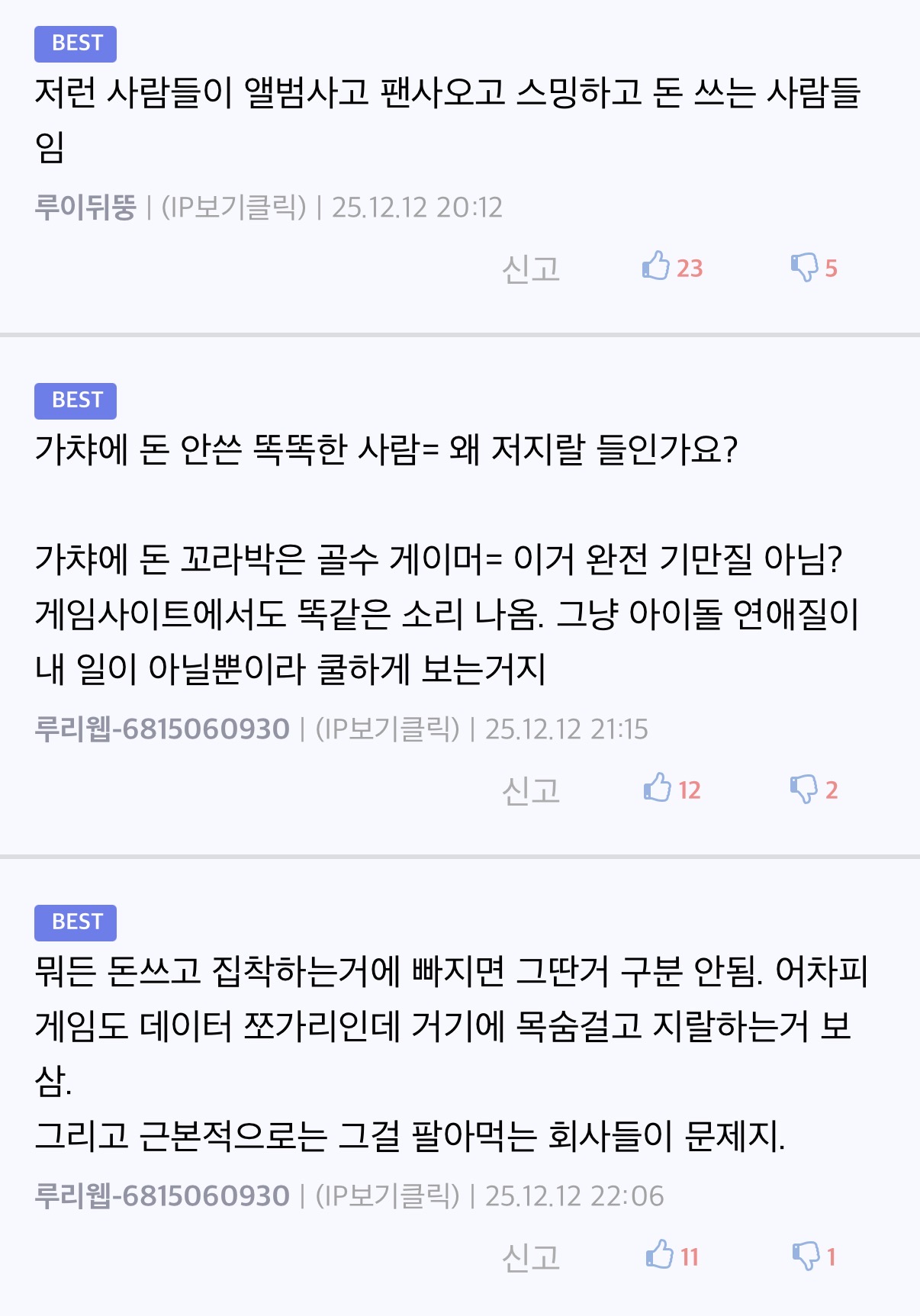 아무리 인기로 먹고 사는거라지만 저건 좀.. | 25.12.22 12:15 | | |
