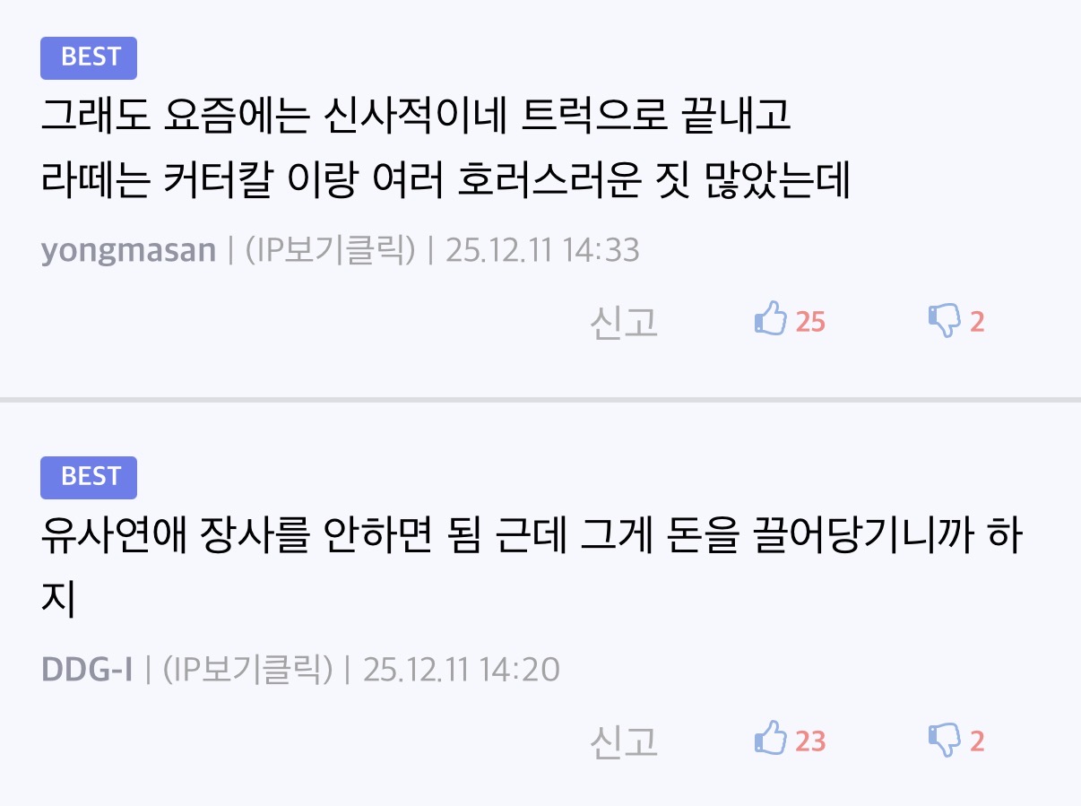 인기있으니까 감수해라 < 개 말도안되는 어거지논리인데 | 25.12.22 12:19 | | |