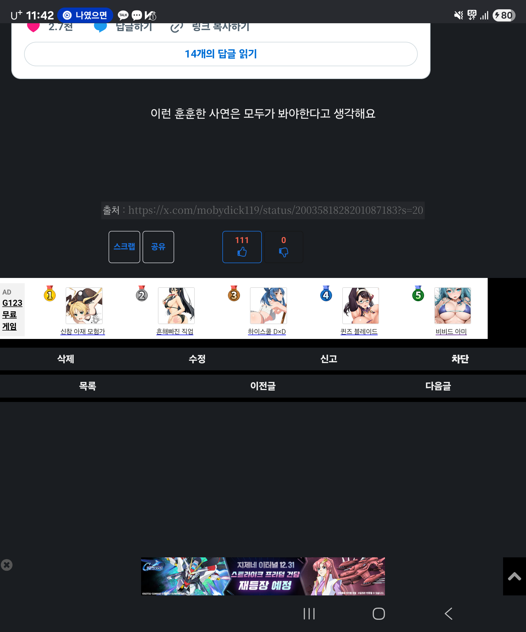 기념비적인 111추는 내가 가져가겠네 유게이!