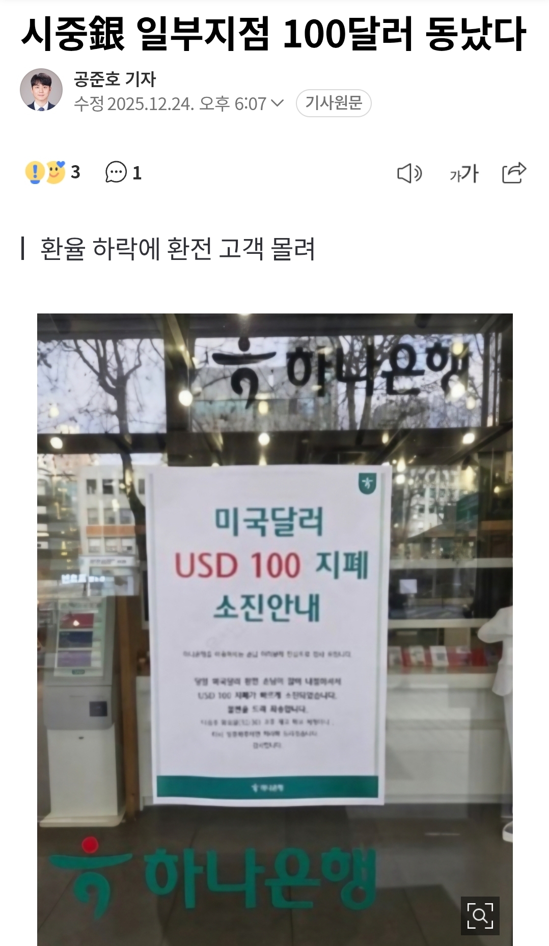 그나마 괜찮다고 하는 수준이 1350원대 | 25.12.24 19:05 | | |