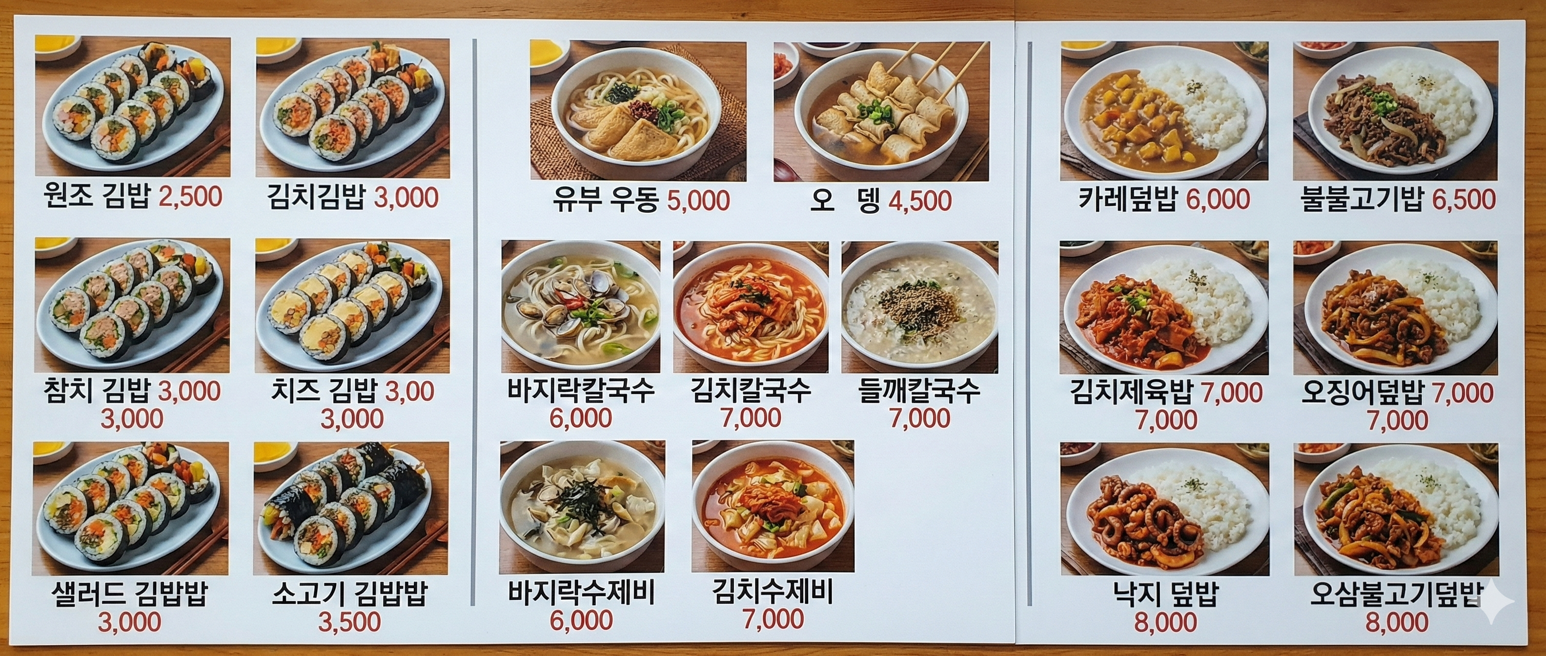 김천 메뉴로 해봤는데. 잘나오네. ㅋㅋ 메뉴판으로 해봤는데. 잘나오네. ㅋㅋ