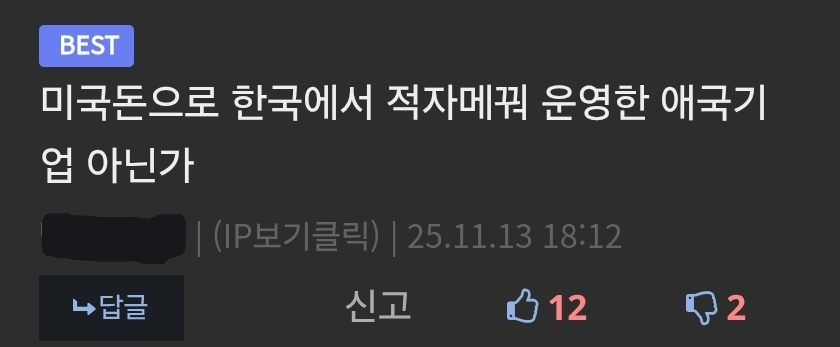 달러로 메꾸나 엔화로 메꾸나 그돈을 우리나라에 기부한거임? 지들이 이득볼려고 투자한거지 어이가 없내 | 25.12.27 00:22 | | |