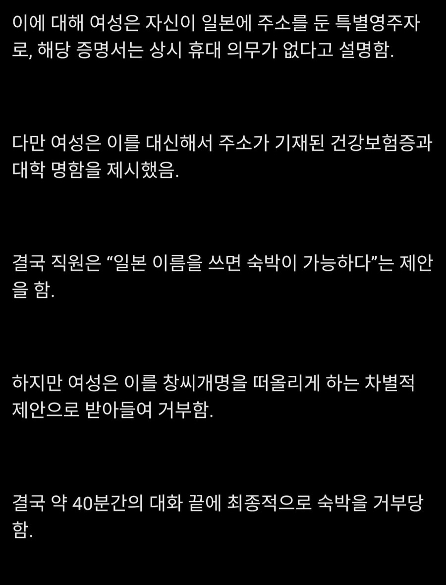 말 그대로 호텔 쓰고 싶으면 일본이름으로 바꿔오세요 한거라 창씨개명 생각날수도 있지 | 25.12.27 18:00 | | |