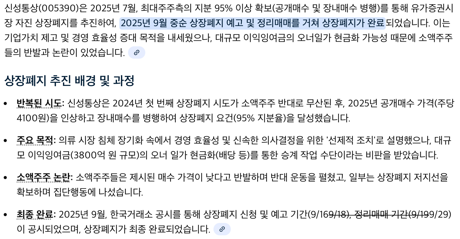 정상 절차 걸쳐서 폐지하는거고 매입가가 상장역대 최대가였다고하는거보면 (진짜 별 개지랄을 한게 아닌이상)손해보는 사람도 없었을 것이고 딱히 법적인 문제가 있진 않음 단지 좀 치사하긴한듯 ㅋㅋ | 25.12.28 08:11 | | |