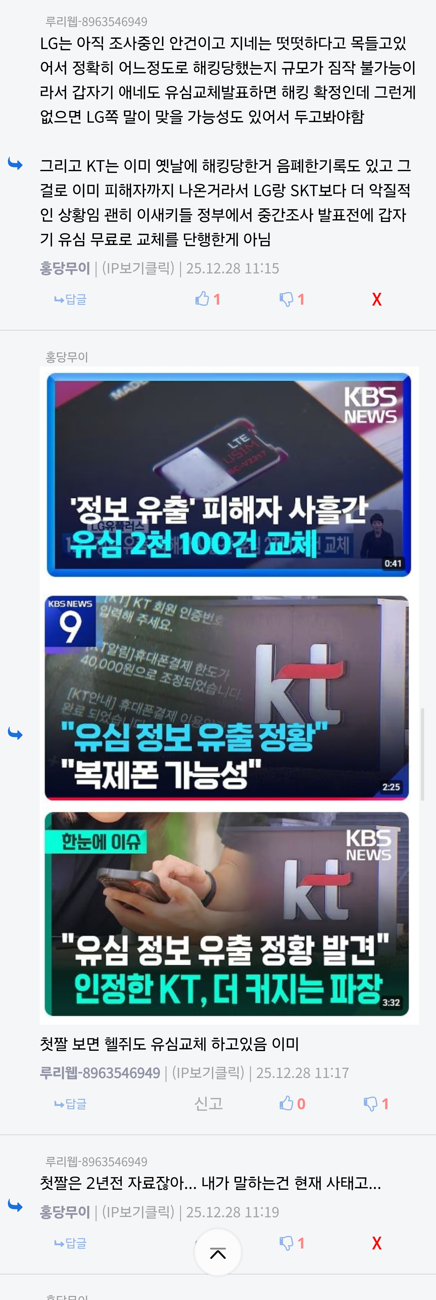 털린 규모가 다르지 않나? skt는 유심키까지 탈렸잖아 | 25.12.28 11:10 | | |